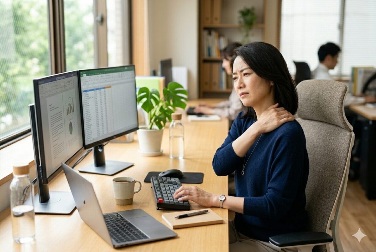 厚生労働省の「国民生活基礎調査」においても、肩こりは女性では自覚症状の第1位、男性でも上位に入る症状とされており、多くの方が日常的に感じている不調の一つです。