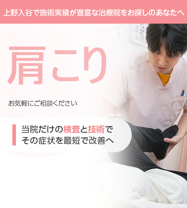 通いやすさも改善のためには重要なポイントです。日比谷線入谷駅とJR山手線鶯谷駅の2駅利用できる好アクセスです。また土日祝と受付しており、予約制ですのでプライバシーを確保しやすく、お待たせする事もありません。