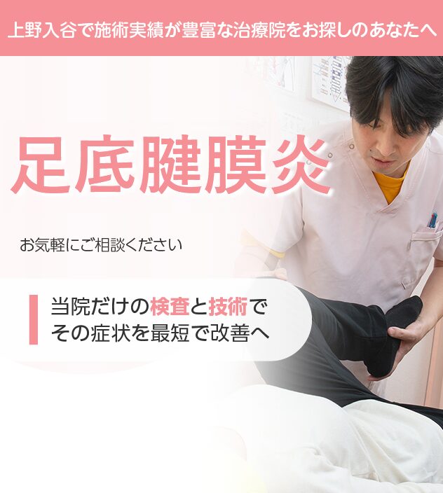 とくに「朝の一歩目が痛い」というのは、足底腱膜炎の特徴的な訴えの一つといわれています。